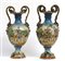 Manifattura del centro Italia, sec XX Coppia di vasi biansati in maiolica polic