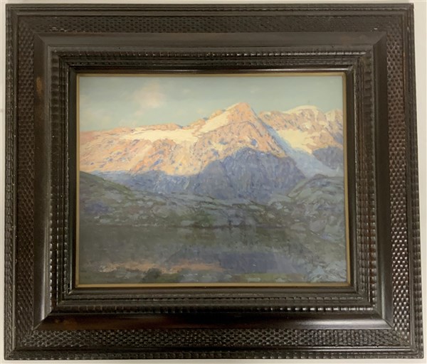 "Lago alpino" 1928, olio su tavola (cm 38x50) Firmato e datato in basso a sinistra. Al retro: titolato e firmato.In cornice