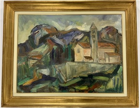 Firma indecifrata "Chiesa di San Pietro - Barni", olio su tela (cm 60x80) firma