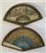 Lotto composto da due ventagli con stecche in madreperla e legno e pagine in carta e stoffa decorate a figure e paillettes, secolo XIX. In teche (difetti)