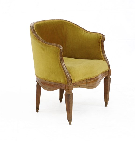 Poltrona a pozzetto in noce con braccioli scanalati, gambe sagomate. Secolo XVIII (difetti)