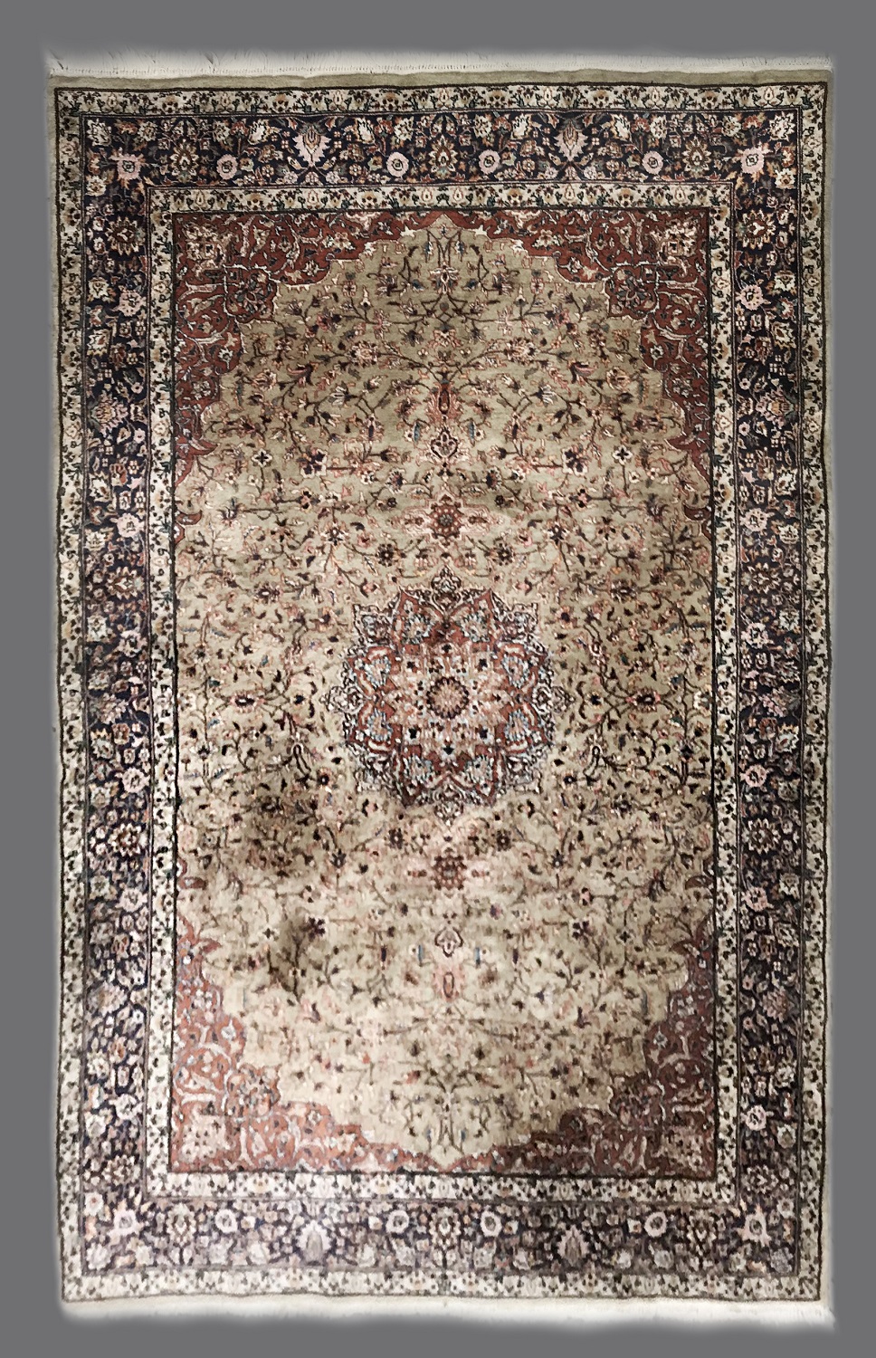 Tappeto Shrinagar, India secolo XX. Decoro con piccolo medaglione polilobato su