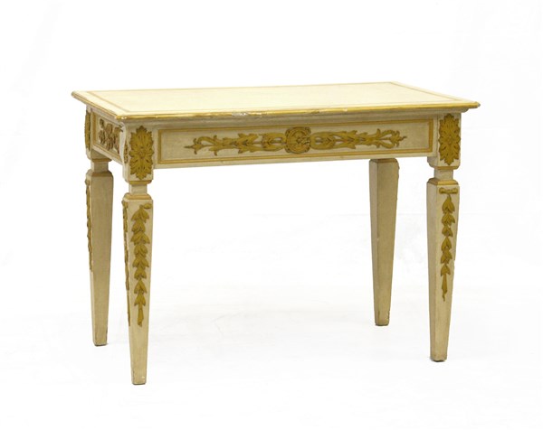 Tavolo a muro in legno laccato e decorato da fregi in rilievo (cm 112x82x63) (difetti)
