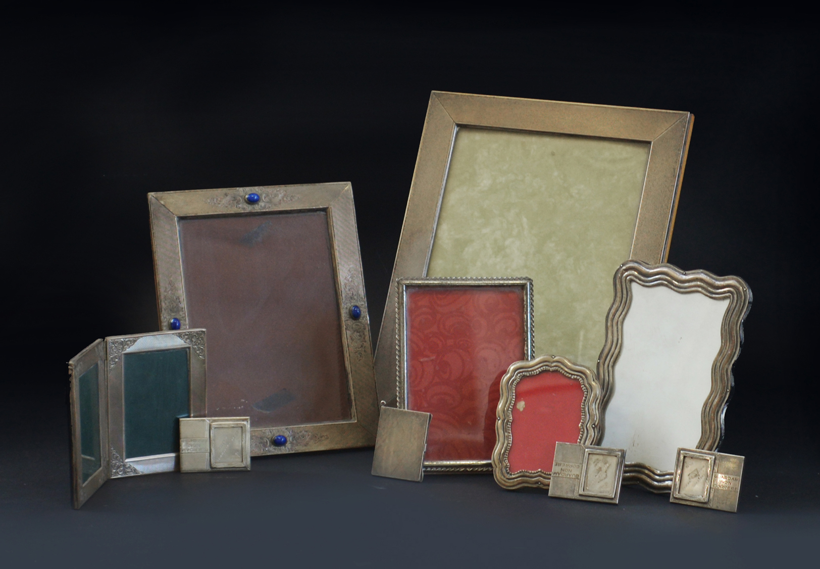 Lotto composto da dieci cornici in argento di diverse misure (lievi difetti)