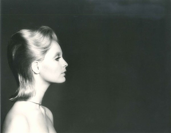 Una stampa fotografica vintage alla gelatina sali d'argento per presentazione di Valentino, con Patti Pravo come modella 1970-71