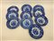 Gruppo di dieci piatti decorativi in ceramica dipinti a fiori e paesaggi dipinti a fiori monocromi blu (difetti)
