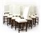 Gruppo di dieci sedie con gambe e traverse a rocchetto, sedute e schienali imbo