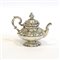 Caffettiera in argento a corpo liscio con bordi in rilievo, ansa sagomata (g lo