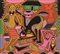 Lilanga George Mngoye afi kilie kisha ata tuambia, 2002 acrilico su masonite cm 61x61 firmato in basso a sinistra, intitolato al retro, autentica Galerie Rosenfeld Bad Kissingen su foto