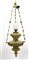 Lampadario a lanterna in metallo dorato decorato con amorini e diffusore in vetro a forma di fiamma (h cm 130) (difetti)