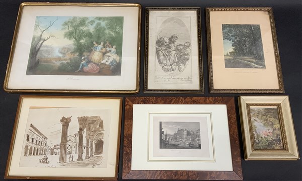 Gruppo di sei incisioni e riproduzioni, di soggetto, autori ed epoche different