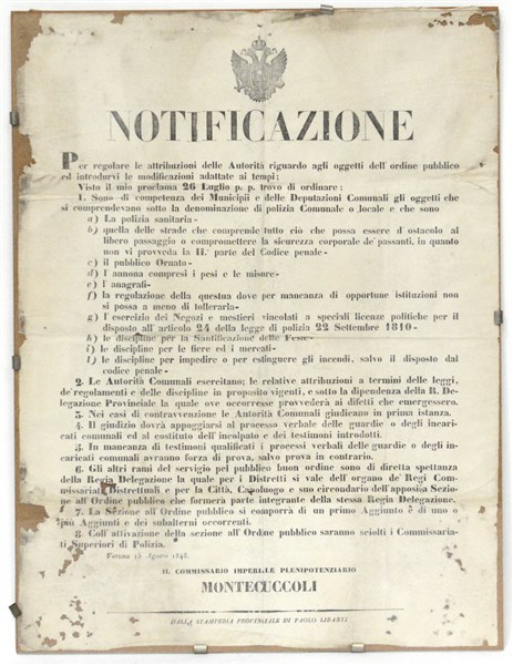 Lotto 2217 | Proclama del secolo XIX (gravi difetti)