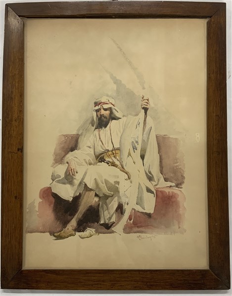 "Figura orientale" acquerello su cartoncino (cm 40x29) Firmato in basso a destra. In cornice (difetti)