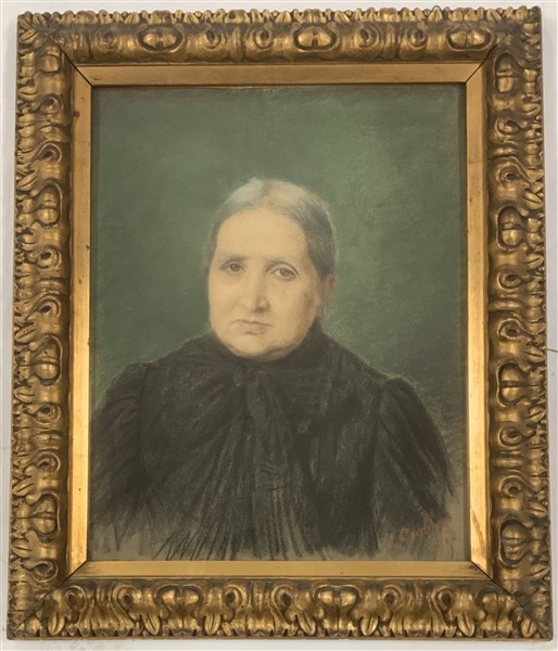 "Ritratto femminile" pastelli colorati su cartone (cm 62x50) Firmato e datato 1908 in basso a destra. In cornice (difetti)