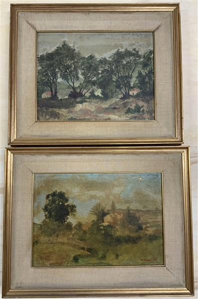 Lotto di due dipinti ad olio raffiguranti "Paesaggi" (misure diverse) Firmati in basso a destra; uno dei due datato 1948. In cornici (difetti)