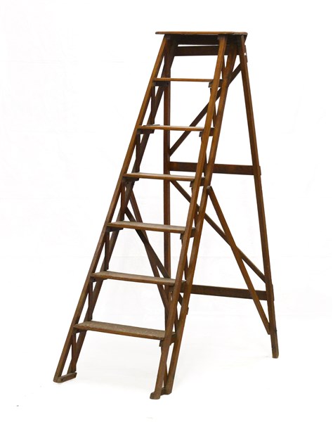 Scala da biblioteca in legno a sette pioli (h cm 170 circa) (difetti)