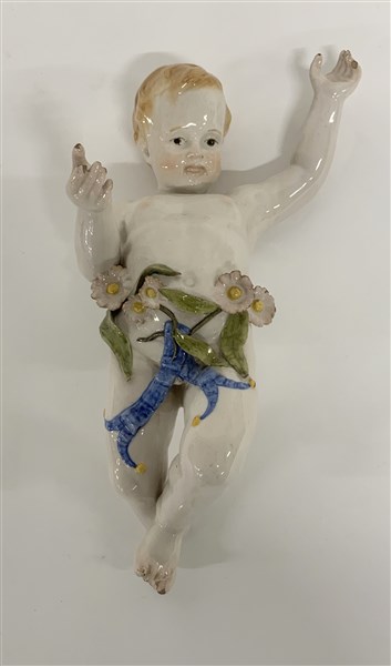 Scultura in ceramica policroma raffigurante un putto (cm h 36)