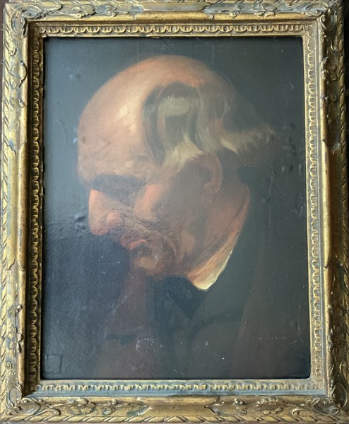 Ignoto del secolo XIX "Ritratto virile" olio su carta applicata su cartone (cm 37x29) In cornice (difetti e restauri)