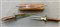Lotto composto da coltello e forchettone per arrosti in custodio di legno intag