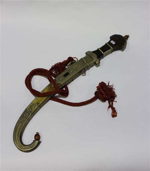 Kumja con fodero con parti in osso e parti in metallo finemente incisi a motivi