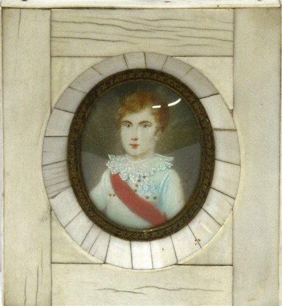 Miniatura in cornice di avorio raffigurante l'Aiglon figlio di Napoleone (cm 5x