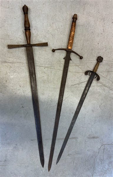 Lotto di cinque spade da panoplia in cattivo stato. Produzione prima metà secol
