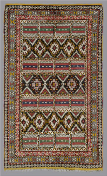 Tappeto Ourika, Marocco, secolo XX. Annodato e tessuto in lana. Decoro geometri