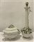 Lotto composto da una zuppiera biansata con coperchio ed una lampada in ceramic