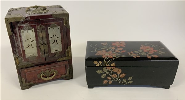 Lotto di due portagioie in legno e pietra dura (misure diverse)