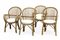 Lotto composto da quattro poltroncine in giunco e malacca con cuscini imbottiti
