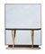 Consolle con specchiera, piano in radica, montanti sagomati e laccati in avorio