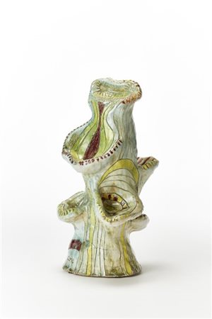 Scultura informale in ceramica smaltata in policromia. Marcata "CMO". (h cm 29) (difetti)