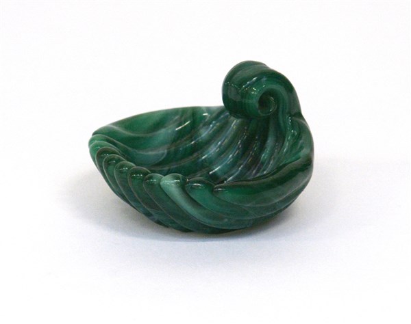 Piccola conchiglia in pasta vitrea verde con venature lattimo. Murano, anni '30. Firma all'acido "venini murano" sotto la base. (cm 150x40x150) (lievi difetti)