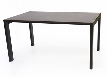 Tavolo allungabile in legno impiallacciato con gambe in metallo verniciato nero. Italia, anni '90/2000. (chiuso cm 150x75x90) (lievi difetti)