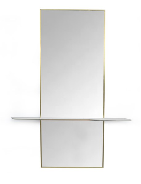 Consolle in marmo bianco di Carrara abbianata a una grande specchiara profilata in ottone. Milano, anni '60/'70. (cm 177,5x265x38)