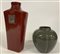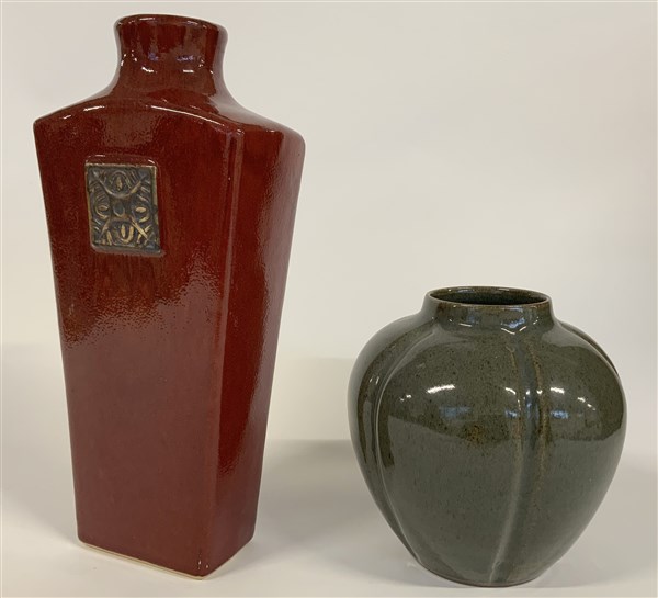 Lotto di due vasi in gres smaltato in verde-grigio e rosso vinaccia. Esecuzione