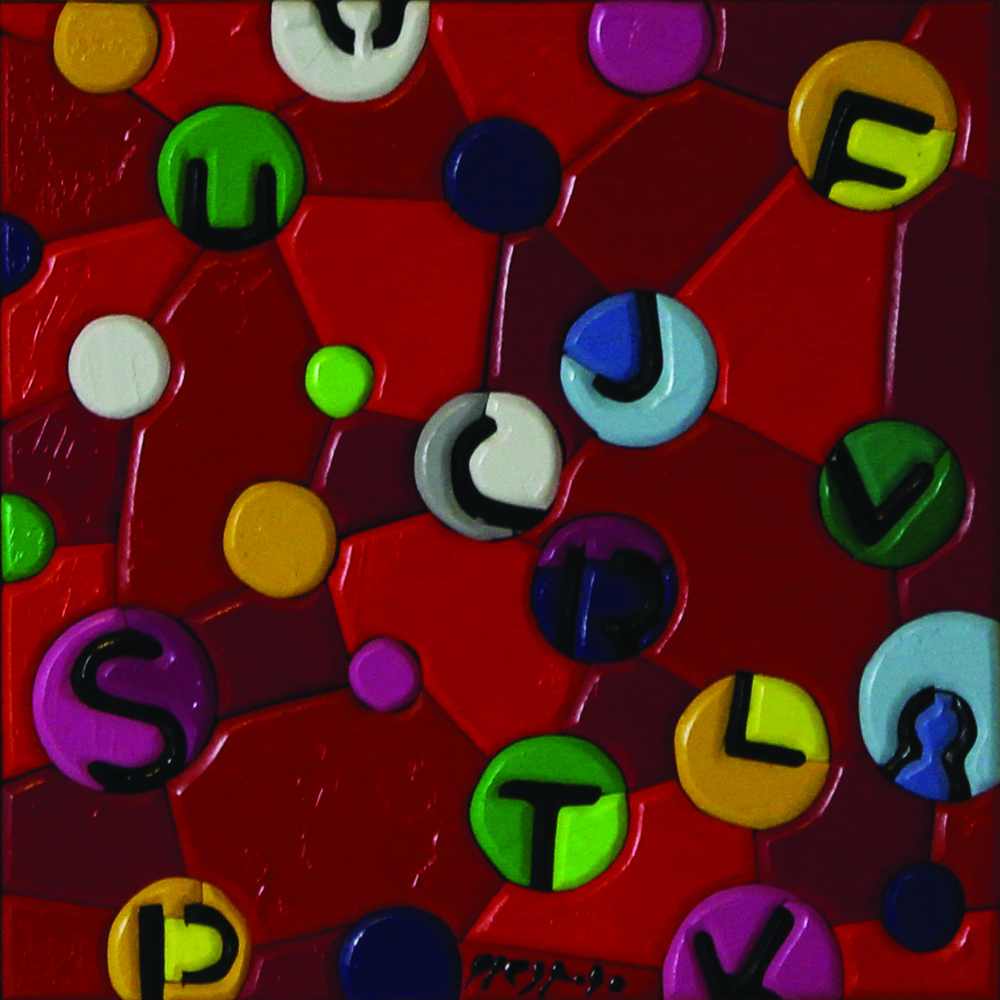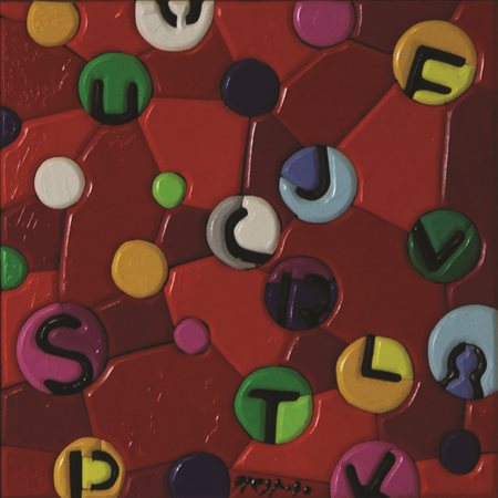 Nespolo Ugo Snow acrilico su legno intagliato cm 20x20 firmato in basso al centro, certificato di autenticità in stoffa al retro, autentica dell'artista su foto