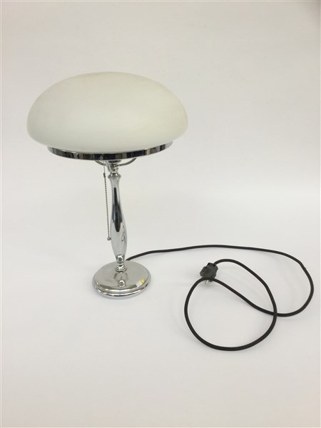 * Lampada da tavolo in metallo cromato con calotta diffusore in vetro lattimo s