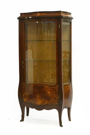Vetrina di forma bombata lastronata e decorata a motivi fogliati e valva di con