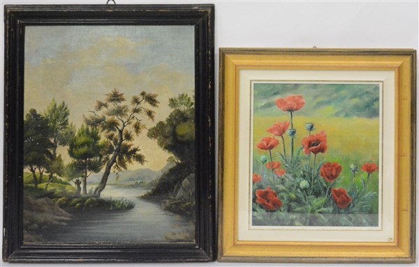 Lotto composto da due dipinti di autori e soggetti diversi. In cornici (difetti