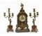 Trittico da camino in stile boulle composto da candelieri a cinque fiamme e pen