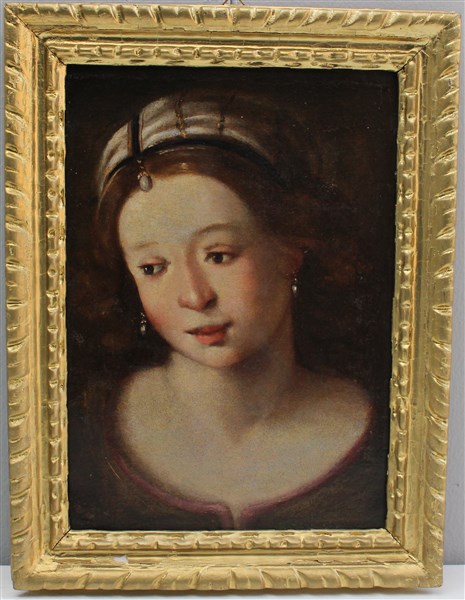 Lotto 3035 | Ignoto "Ritratto di fanciulla con cuffia" antico dipinto ad olio su tela (cm 41