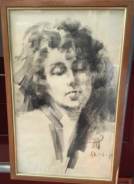 Ignoto del secolo XX "Ritratto di giovane donna" carboncino e sfumino su carta (mm 480x290) Siglato "MP" (?) e datato "XX- I - 19" in basso a destra. In cornice (difetti)