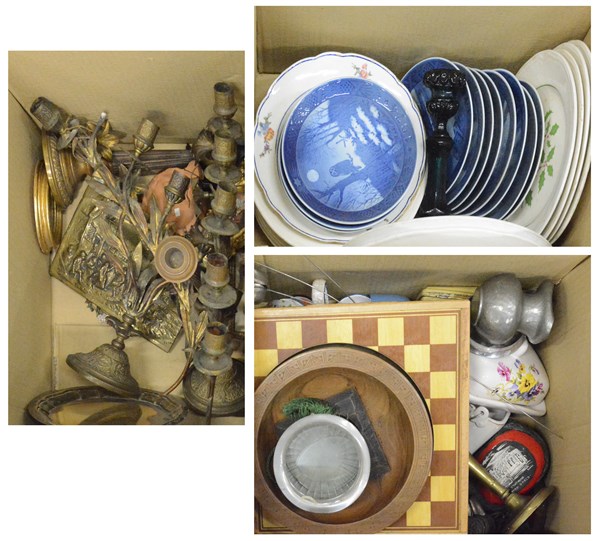 Lotto composto da tre cartoni contenenti oggetti di manifatture e materiali dif