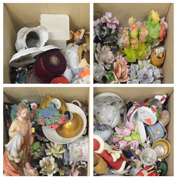 Lotto composto da quattro cartoni contenenti oggetti di manifatture e materiali differenti (difetti)