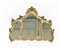 Specchiera tripartita in legno intagliato e dorato a volute, due braccia portacandela (cm 75x140) (difetti)