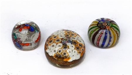 Lotto composto da tre presse papiers in vetro a murrine policrome. Murano, produzione recente. (difetti)