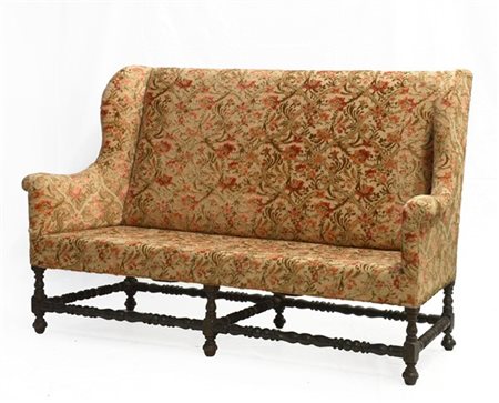 Divano con gambe e traverse tornite (largh. cm 205) (difetti)