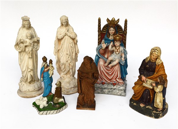 Lotto composto da sei statuette a soggetto sacro in materiali differtenti (misu