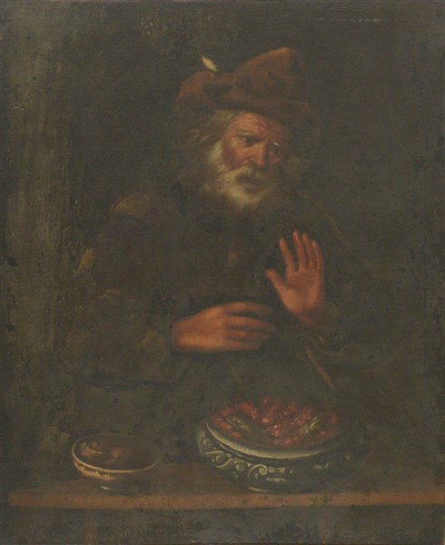 Ignoto "Figura di anziano con braciere" olio su tela (cm 112x93) (difetti e restauri)